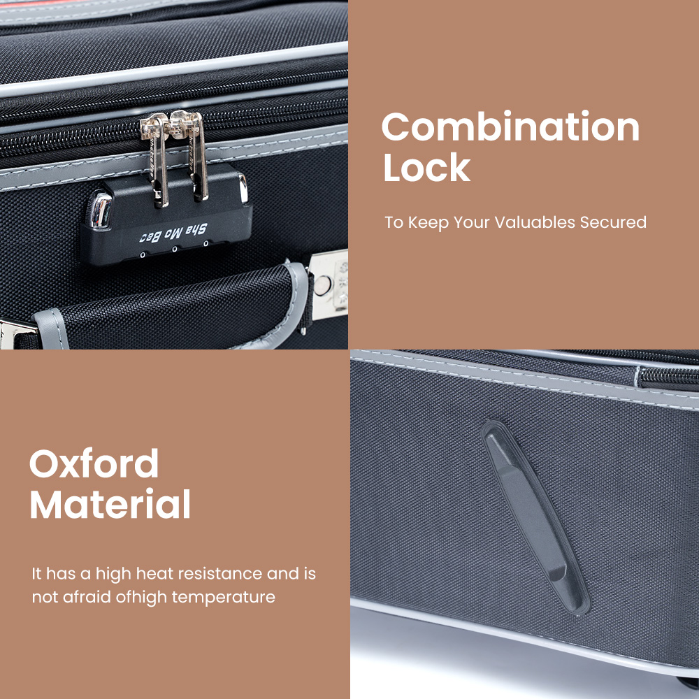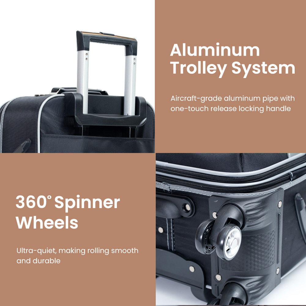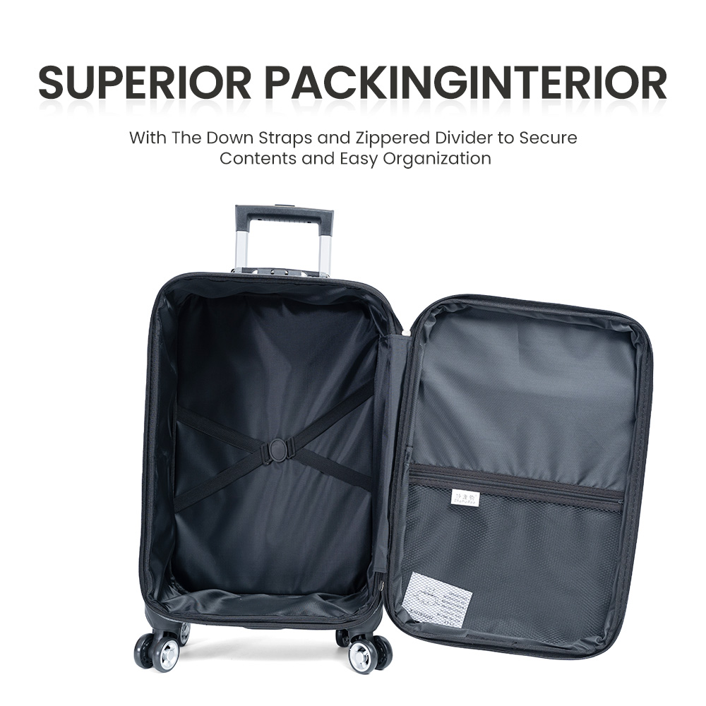 | Oxford Fabric | 20″24″28″ | Aluminum frame | spinner double silent wheel*4 | Soft carry handle | Black,Customize Color |