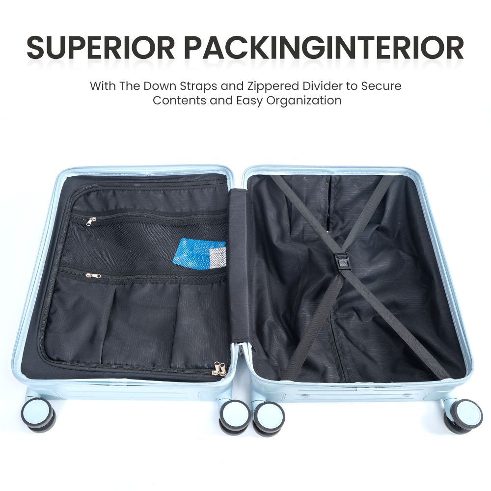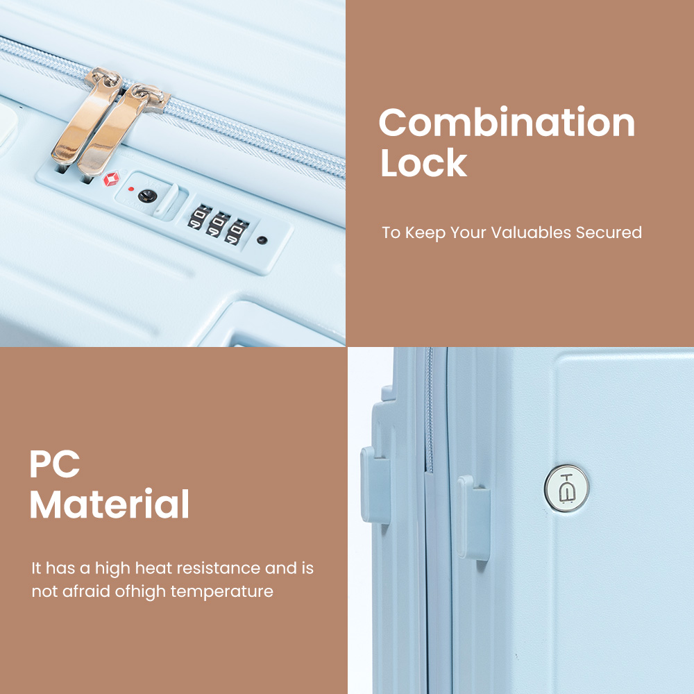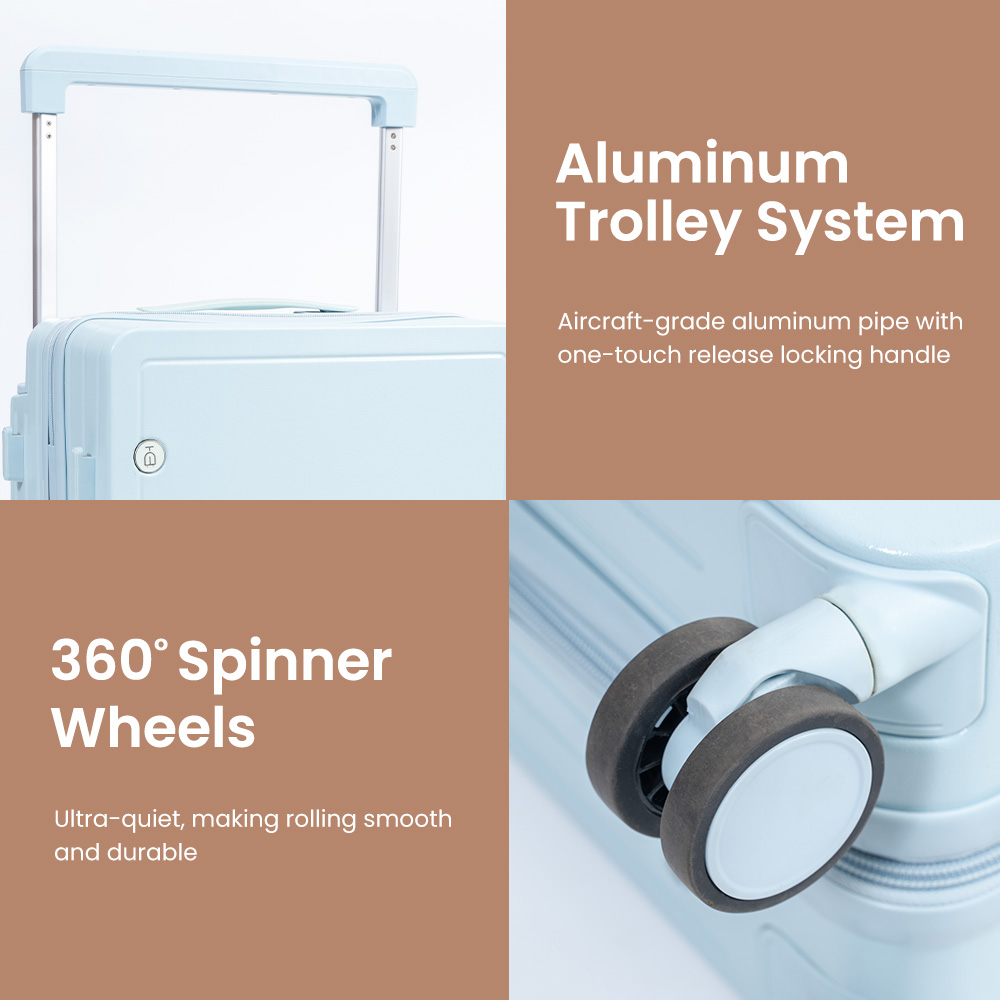 | PC | 20″24″28″ | Aluminum trolley | spinner double silent wheel*4 | Soft Handle*2 | Blue,Customize Color |
