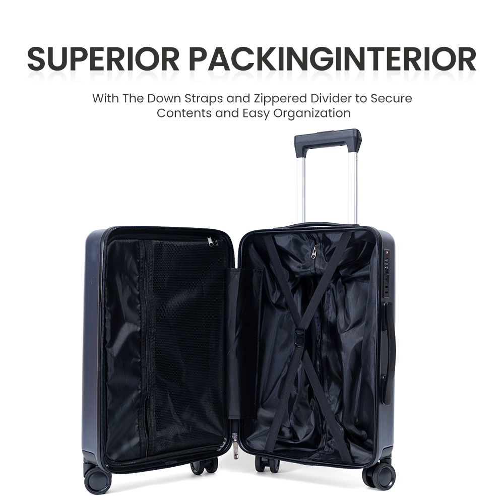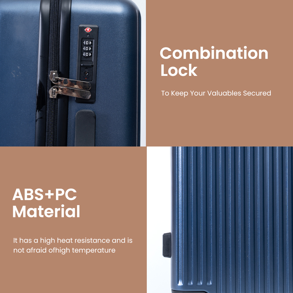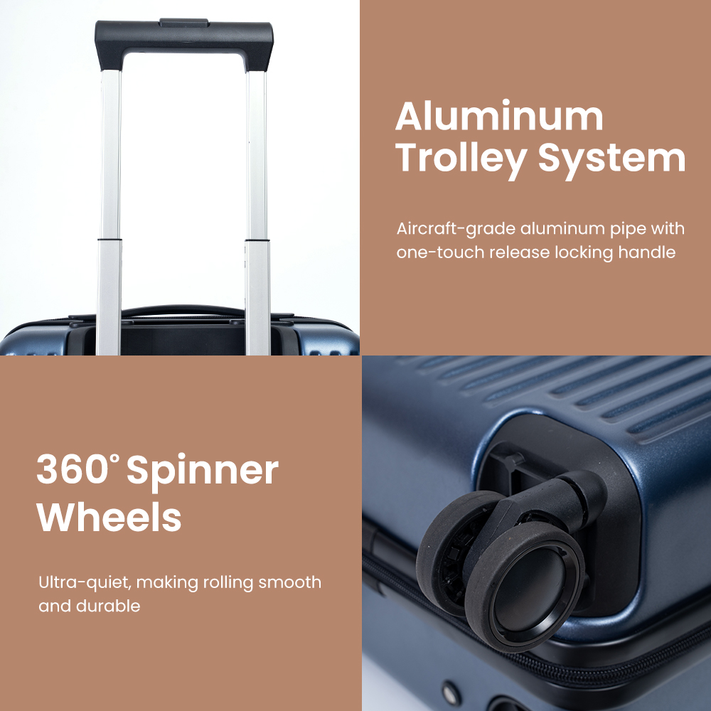 | ABS+PC | 20″ | Aluminum trolley | spinner double silent wheel*4 | Soft Handle*2 | Bule,Customize Color |