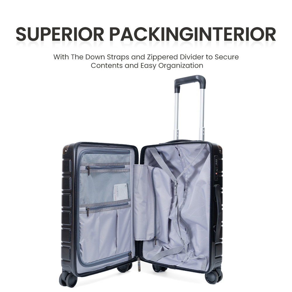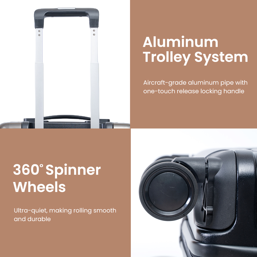 | ABS+PC | 20″ 24″ 28″ | Iron trolley | spinner double silent wheel*4 | Soft Handle*2 | Black,Customize Color |