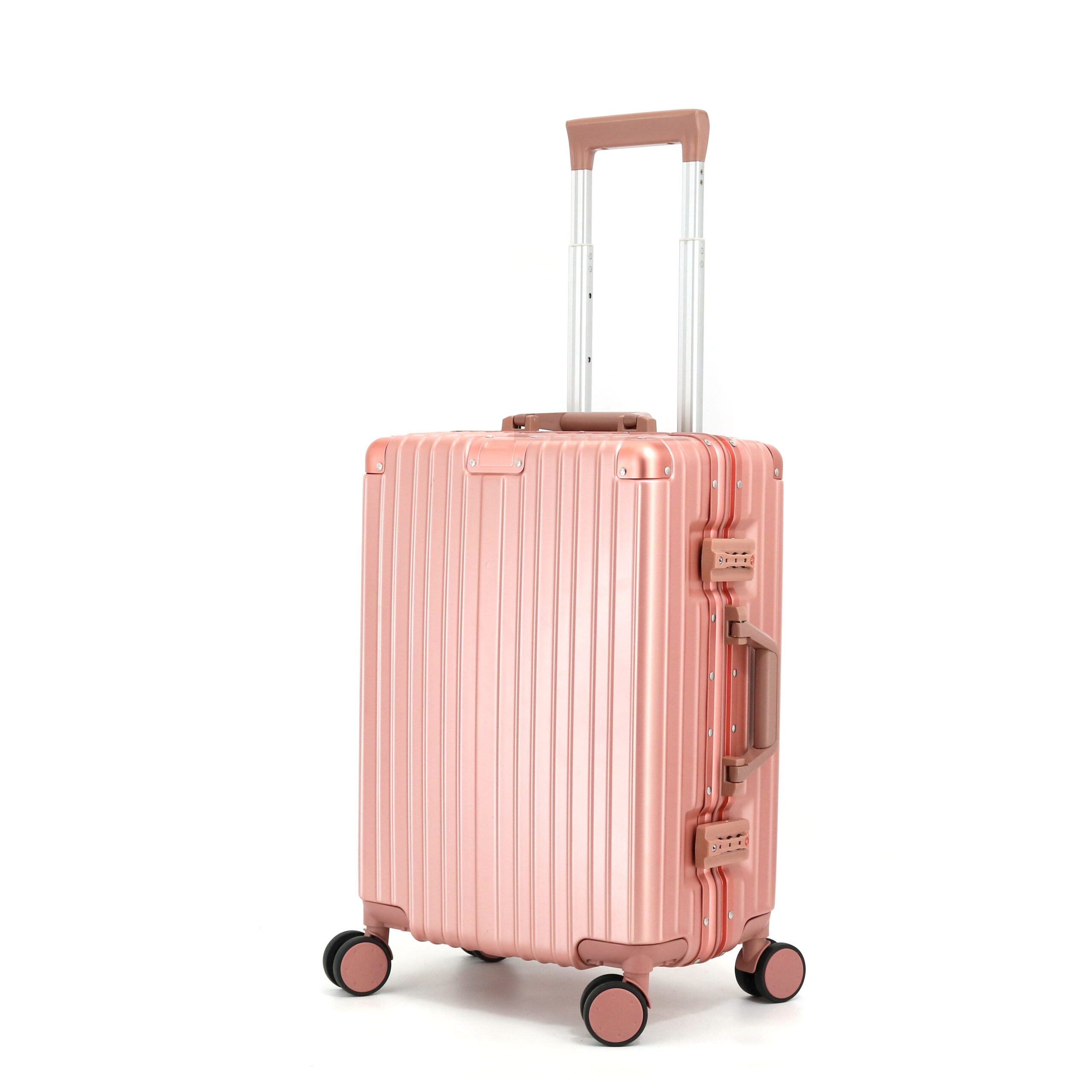 ABS+PC 20″ Aluminum trolley spinner double silent wheel*4 hard handle*2 White,Pink,Customize Color